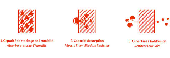 Par rapport aux isolants à base de pétrole comme le polystyrène ou le polyuréthane, l'isolation en fibres de bois est environ 15 à 20 fois plus apte à évacuer l'humidité grâce à son ouverture à la diffusion.